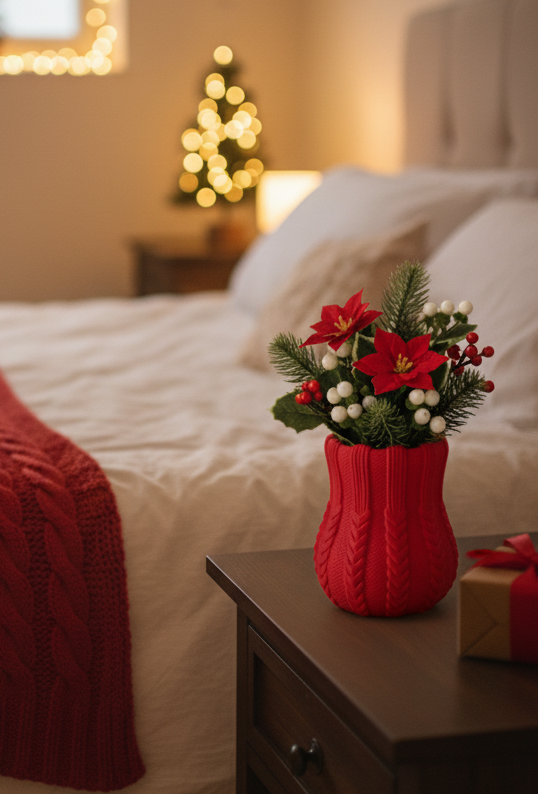 Infuse your home with cozy, handcrafted charm this holiday season with our 3D Printed Knitted Christmas Vase. This unique piece brings the beloved texture of a warm sweater to your Christmas home decor, offering a stunning modern twist on classic winter warmth.